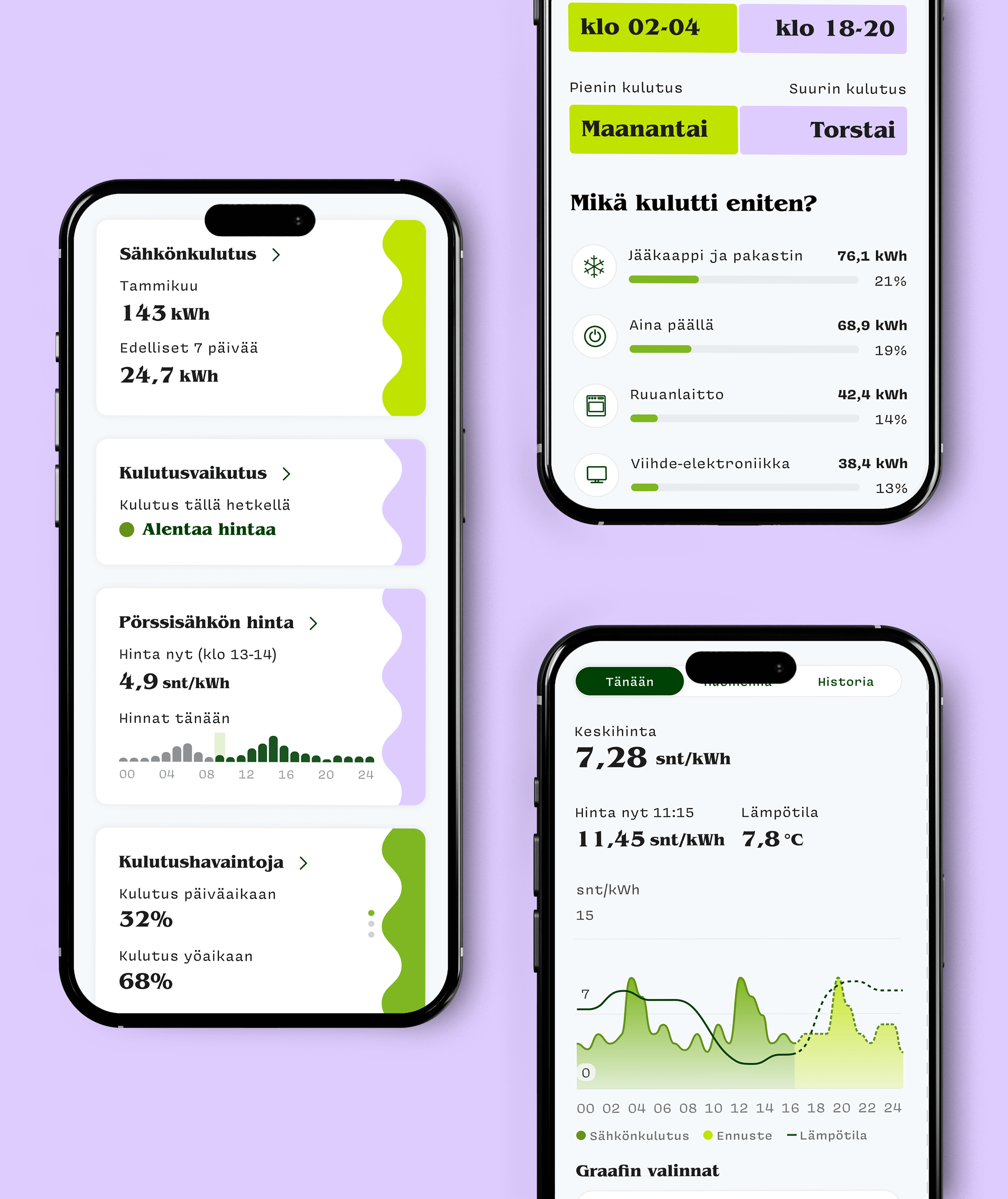 Asiakkaanamme saat käyttöösi ilmaisen OmaLumme-sovelluksen. Sen avulla saat ennennäkemättömän tarkan kuvan kotisi sähkönkulutuksesta. Vähennä turhaa sähkönkäyttöä, ajoita kulutus fiksusti ja pienennä sähkölaskuasi!