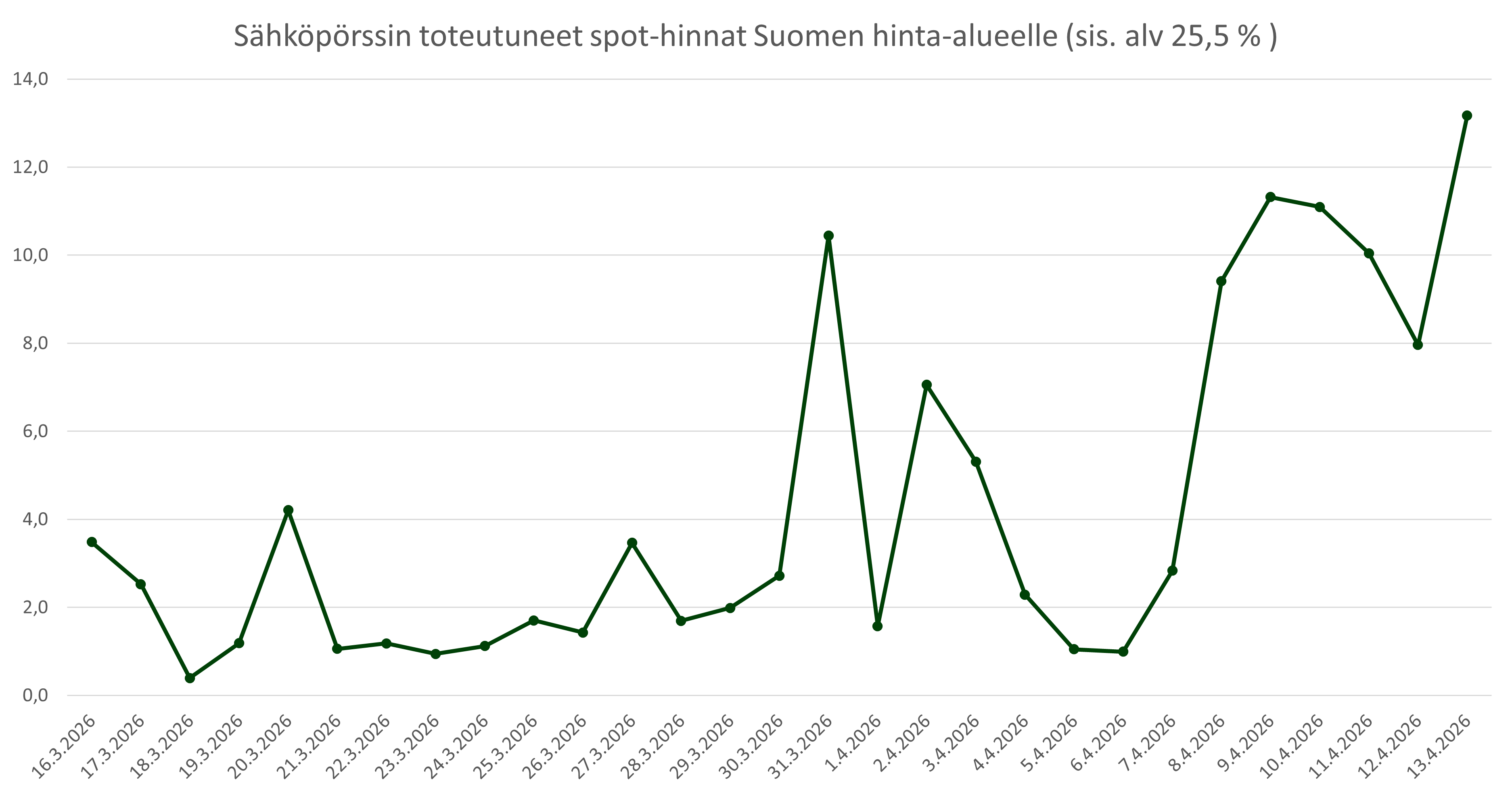 Viime viikolla vähäinen tuulivoimatuotanto ja Olkiluodossa alkanut ydinvoimalan vuosihuolto nostivat spot-hintaa. Tällä viikolla spot-hinnan odotetaan nousevan edelleen.